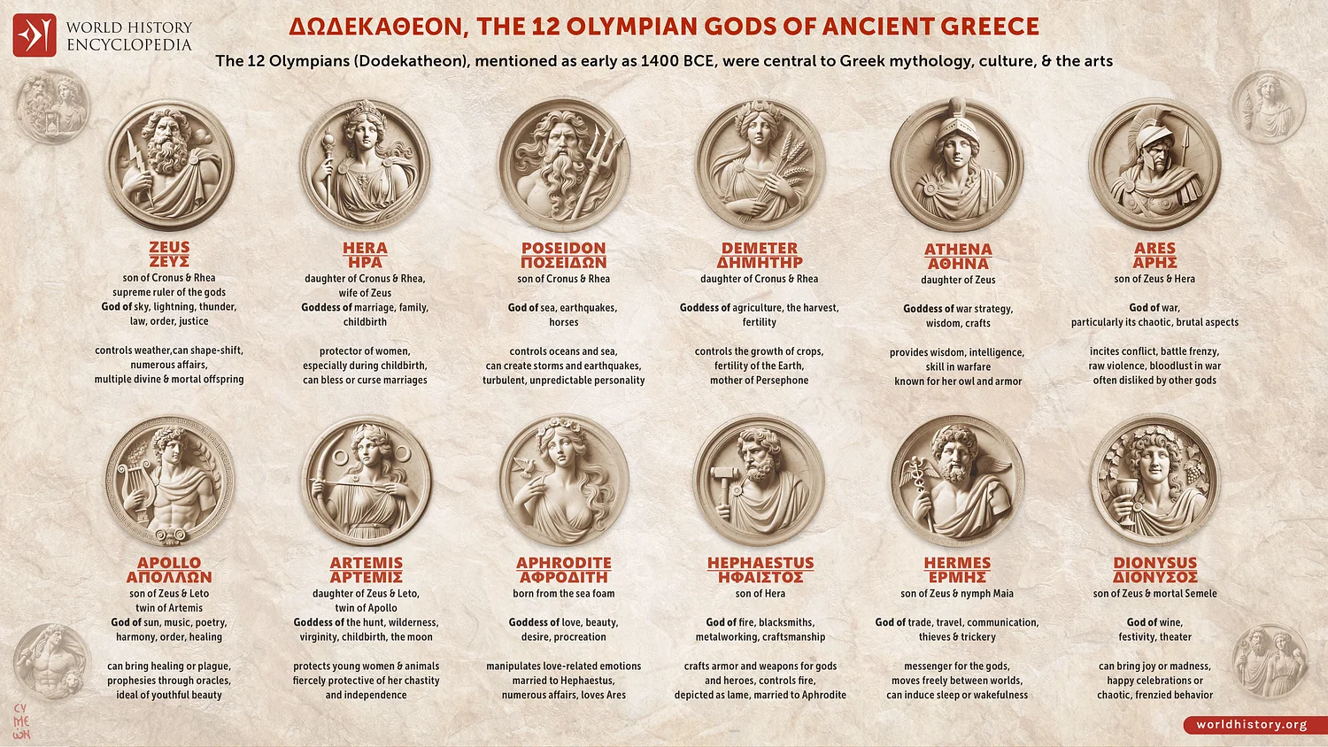 Αυτοί οι 12 θεοί αποτελούν το θεϊκό πάνθεον των Ελλήνων και συνδέονται με πολλούς μύθους και ιστορίες, που αντηχούν μέχρι σήμερα στην πολιτιστική κληρονομιά της Δύσης.